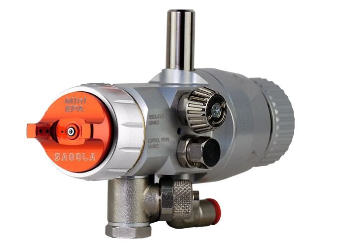 La Sagola Mini V, increíblemente fiable, carece de difusores de aire, cámaras ciegas o roscas en contacto con la pintura, así como de juntas, sellos o piezas de plástico en el área de producto —solo contacto de metal con metal, lo que facilita la limpieza y el mantenimiento.